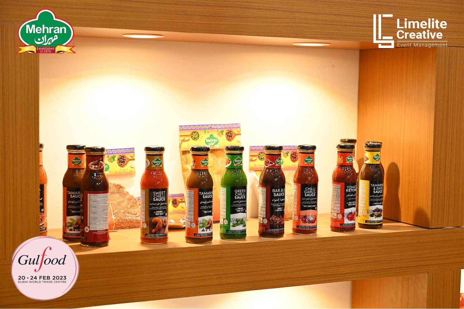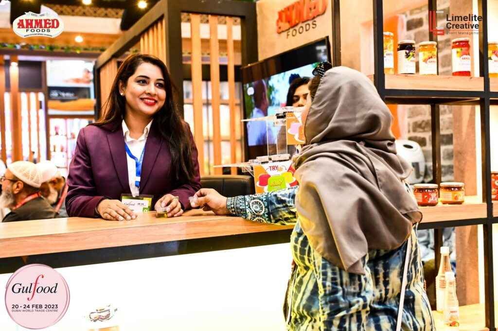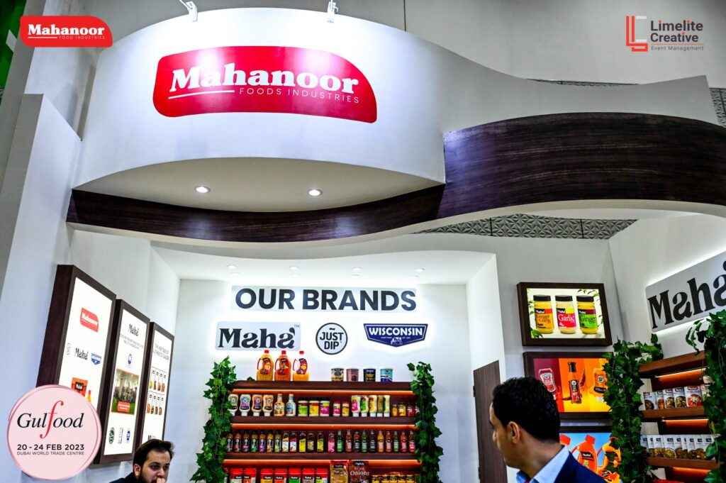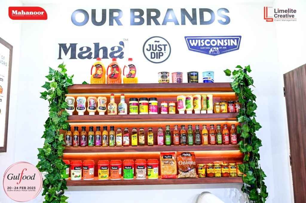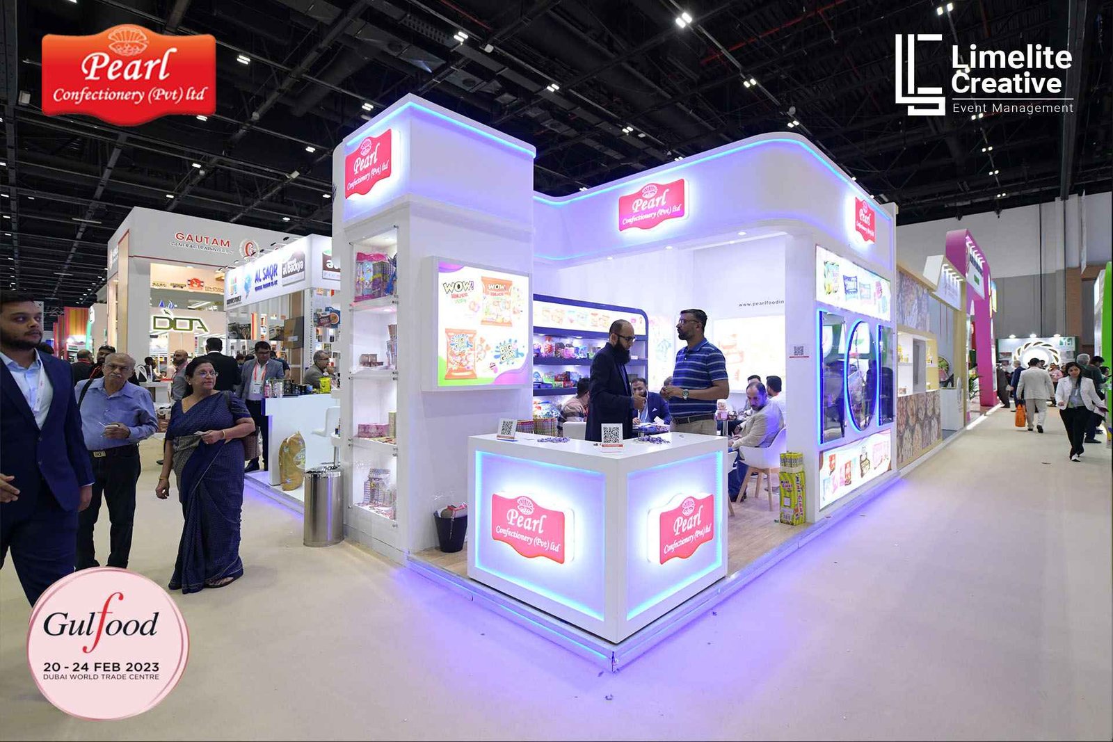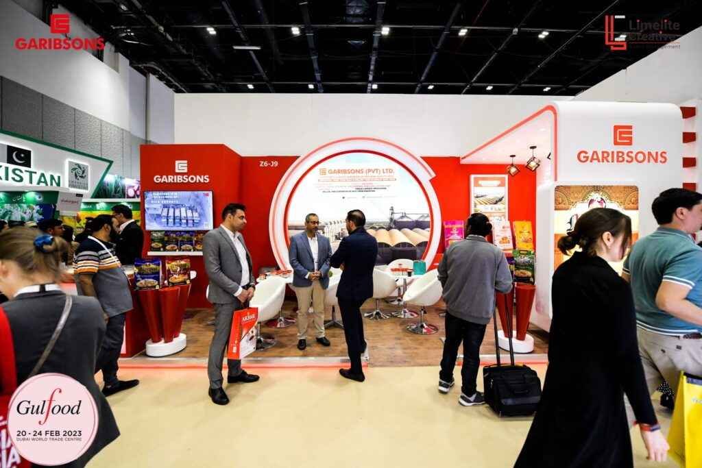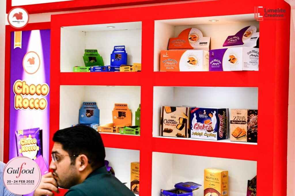 A spacious 14m x 6m booth for Shan Foods at Gulfood 2023, designed with premium branding, vibrant product displays, and an inviting layout to highlight their diverse food range and attract global visitors.