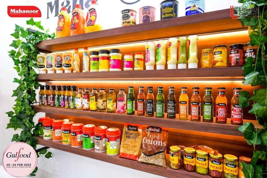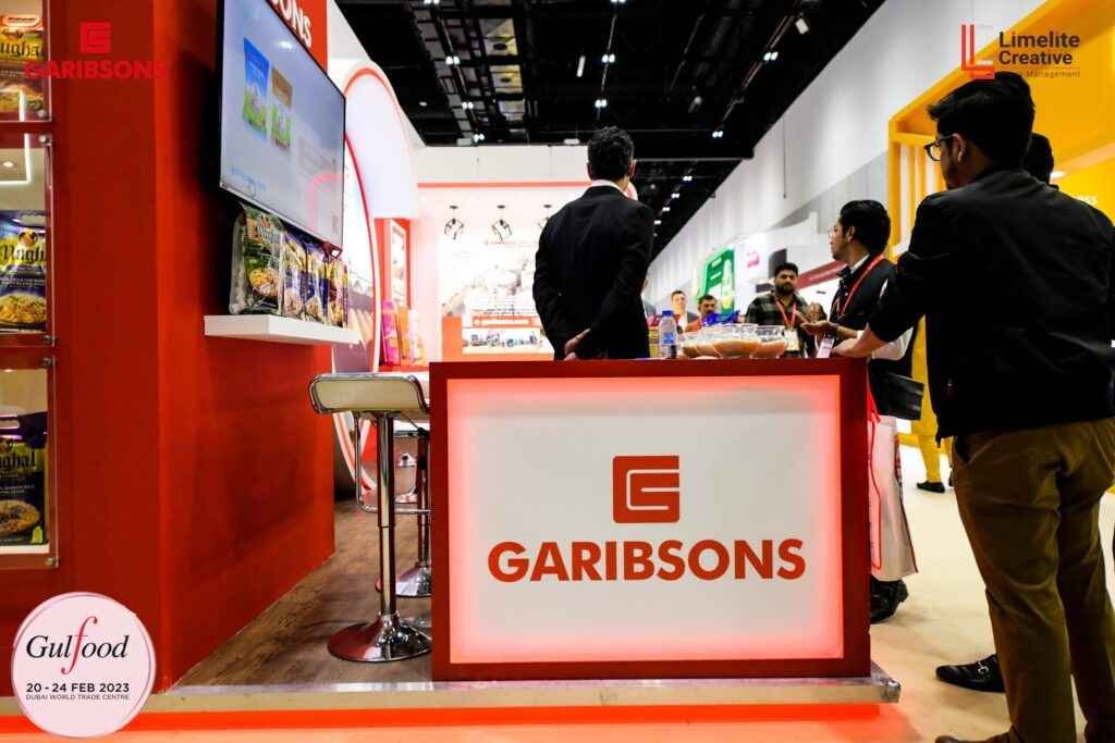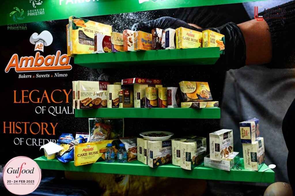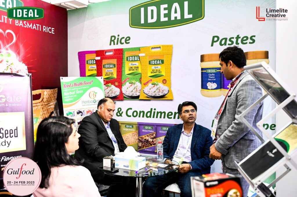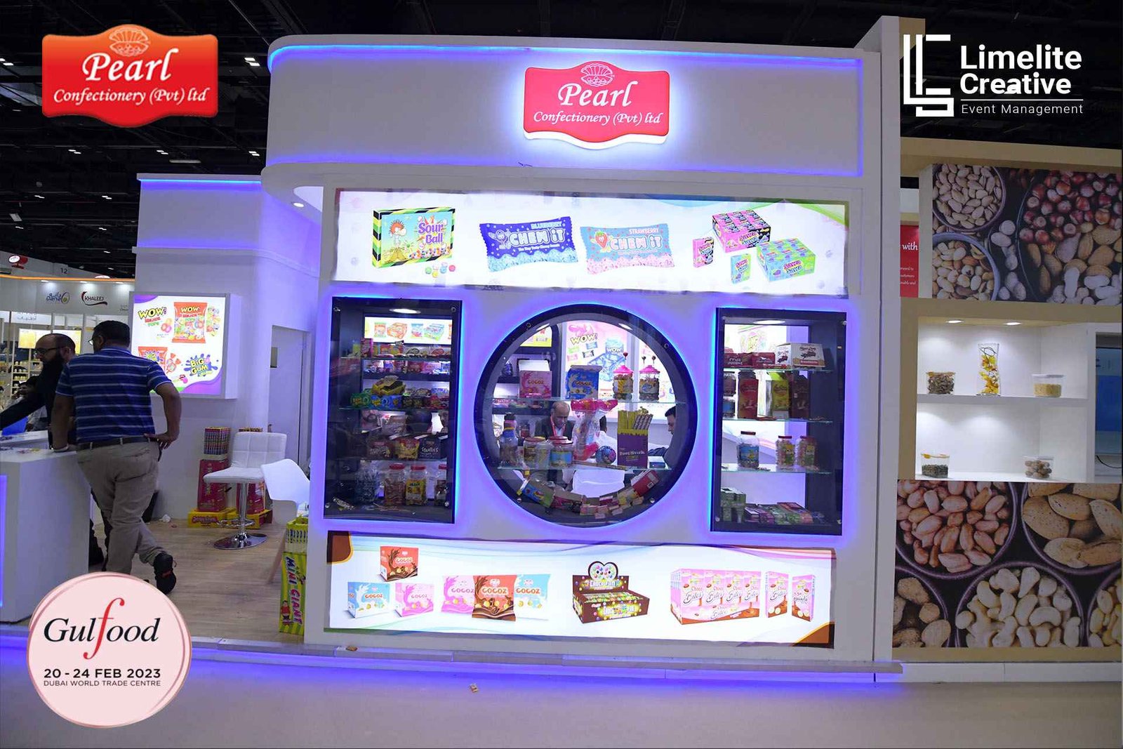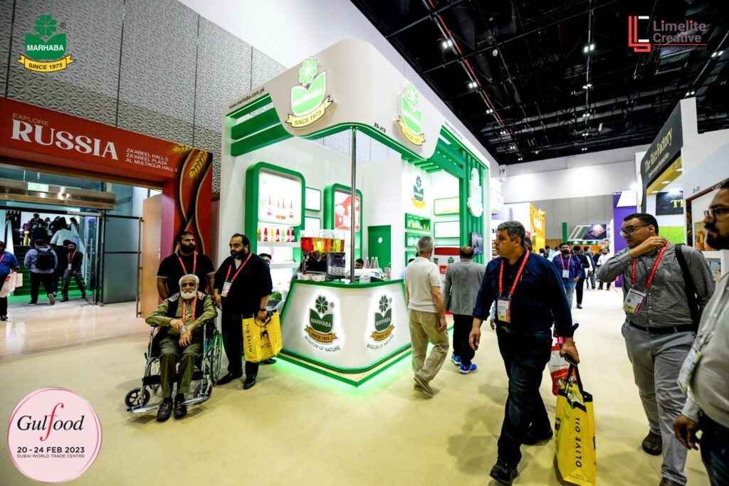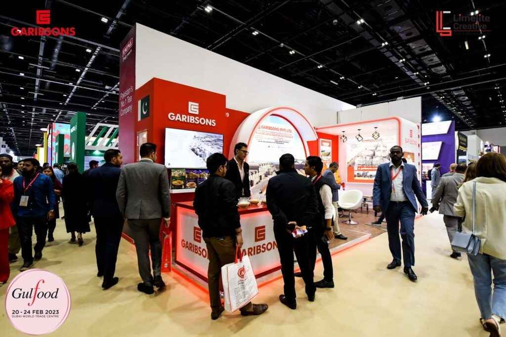 A spacious 14m x 6m booth for Shan Foods at Gulfood 2023, designed with premium branding, vibrant product displays, and an inviting layout to highlight their diverse food range and attract global visitors.