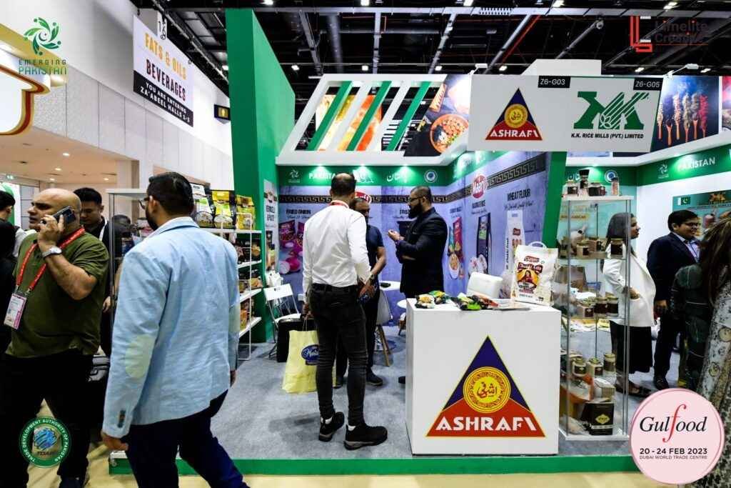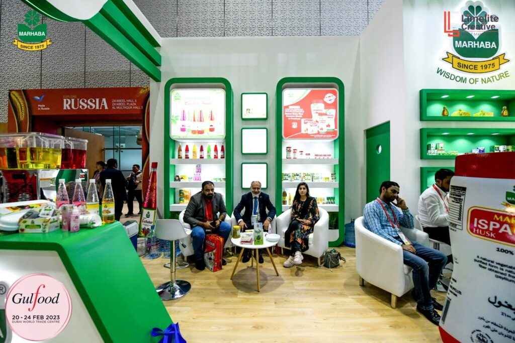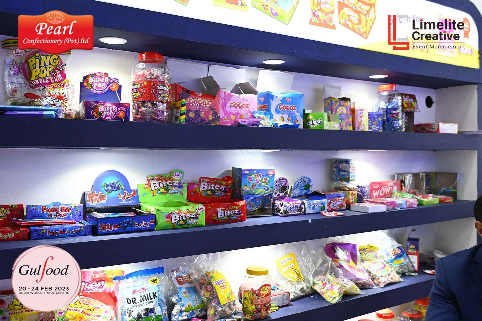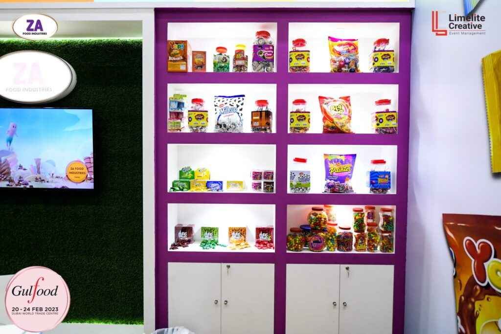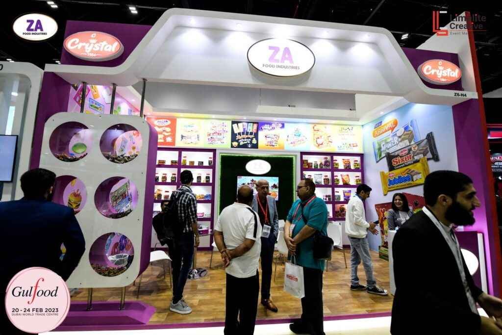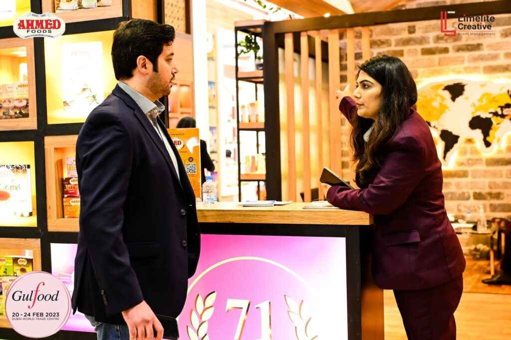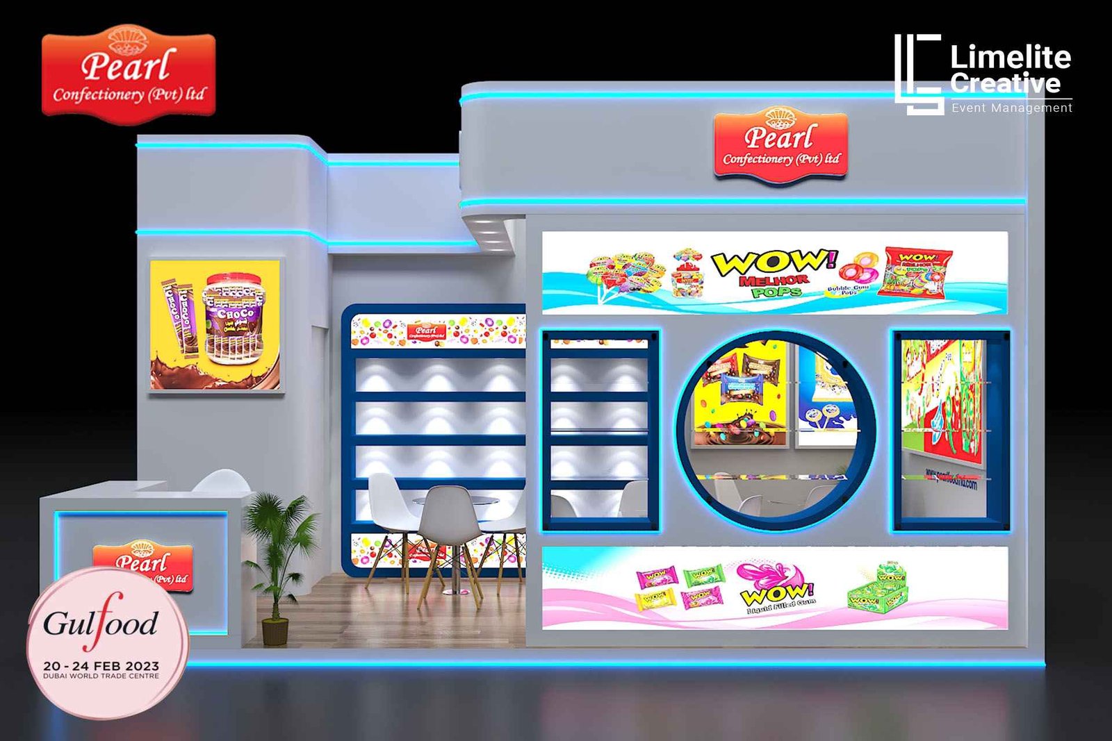 A spacious 14m x 6m booth for Shan Foods at Gulfood 2023, designed with premium branding, vibrant product displays, and an inviting layout to highlight their diverse food range and attract global visitors.
