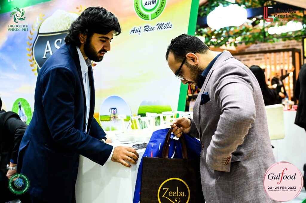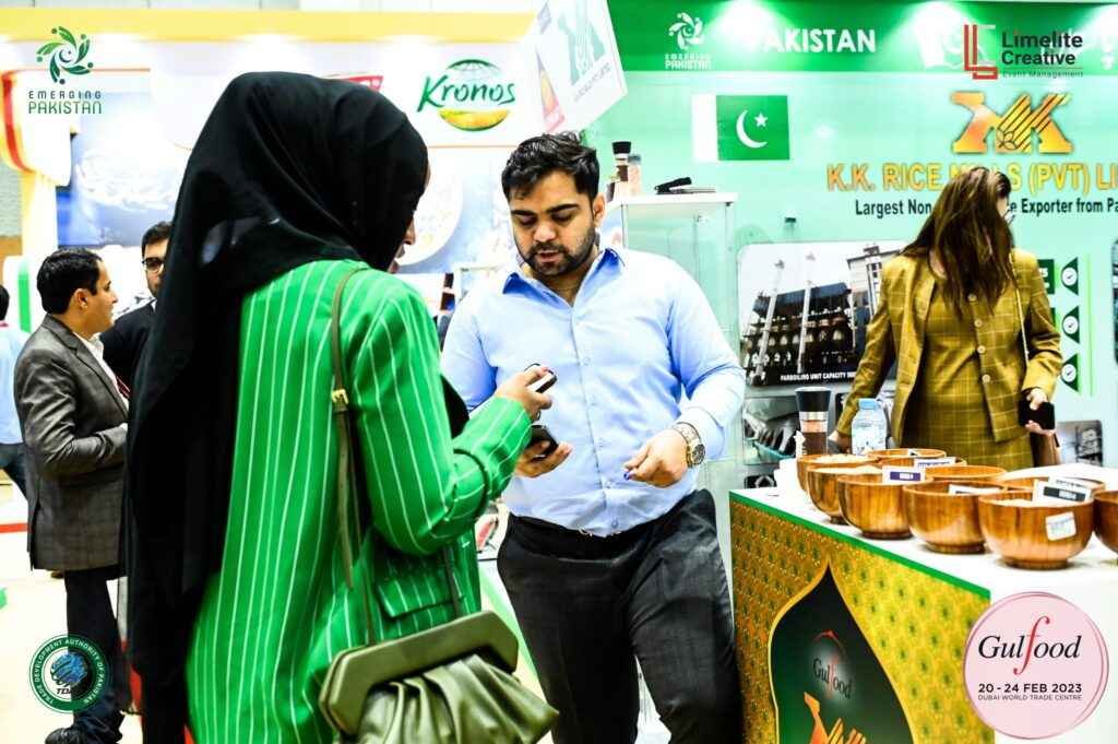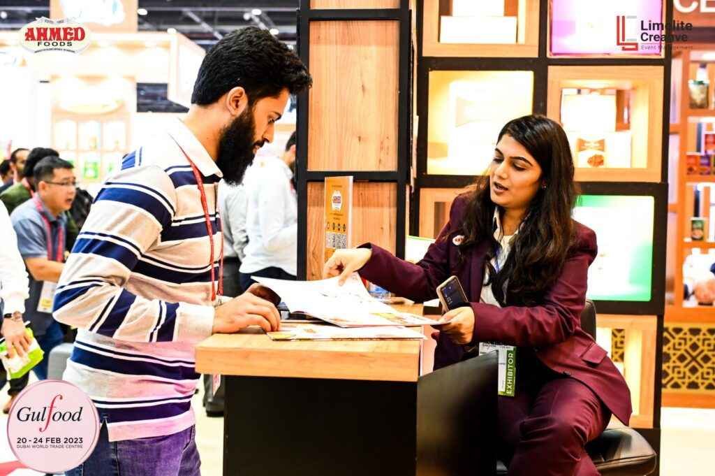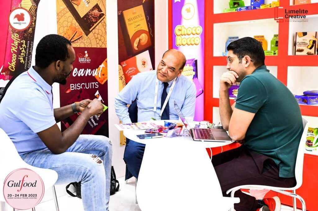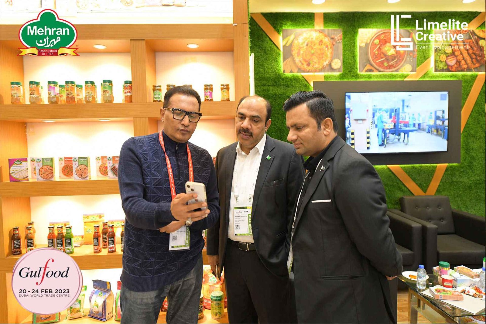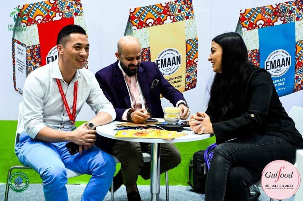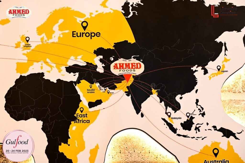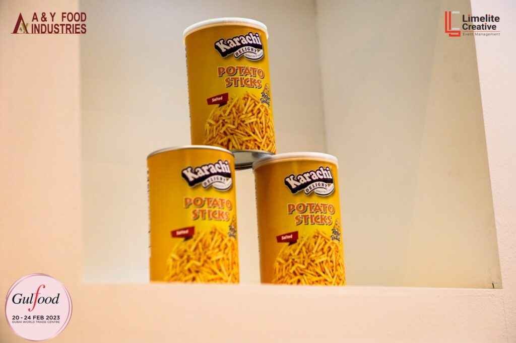 A spacious 14m x 6m booth for Shan Foods at Gulfood 2023, designed with premium branding, vibrant product displays, and an inviting layout to highlight their diverse food range and attract global visitors.