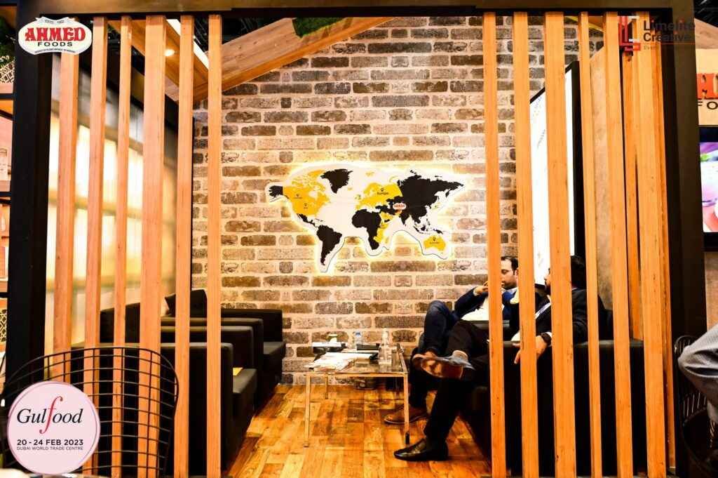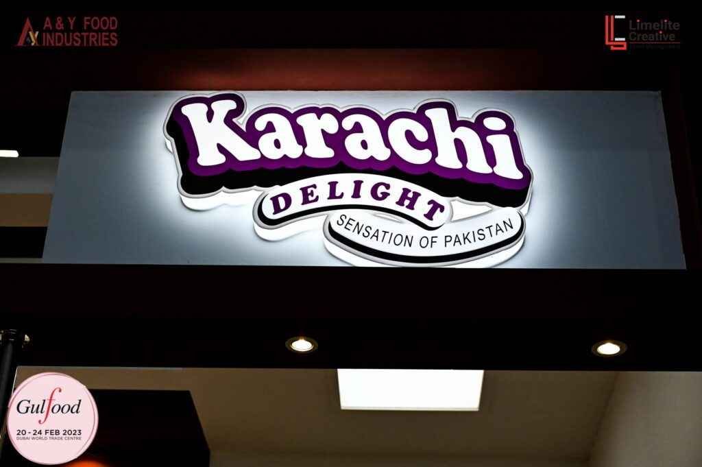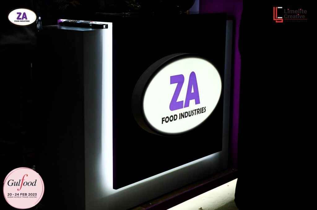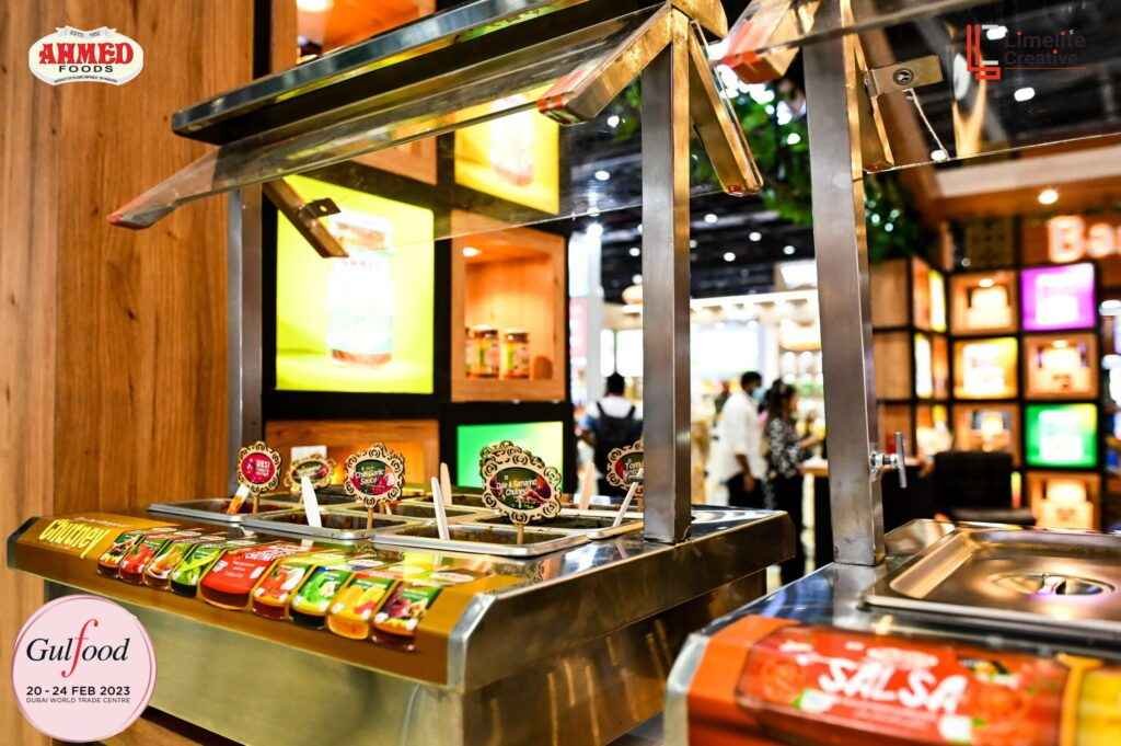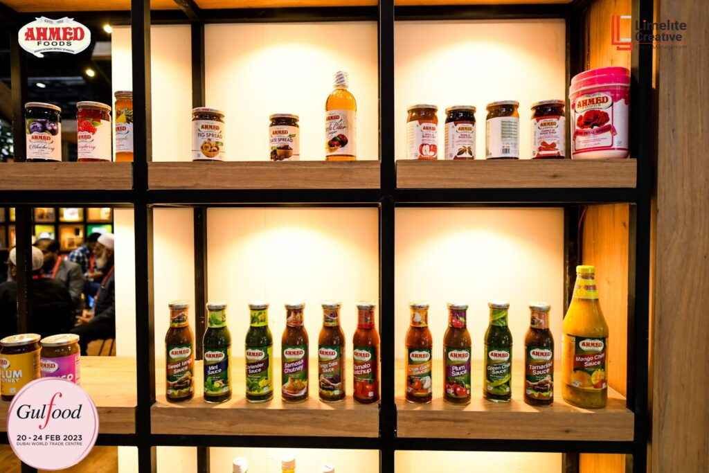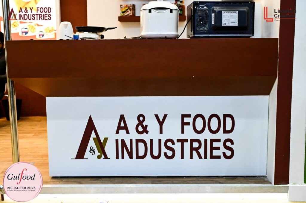 Ahmed Foods stall size was 6mX6m having total area of 36 squares meter. The design looked simple & beautiful with nicely lighted logos on counter & back wall along with backlit boards.