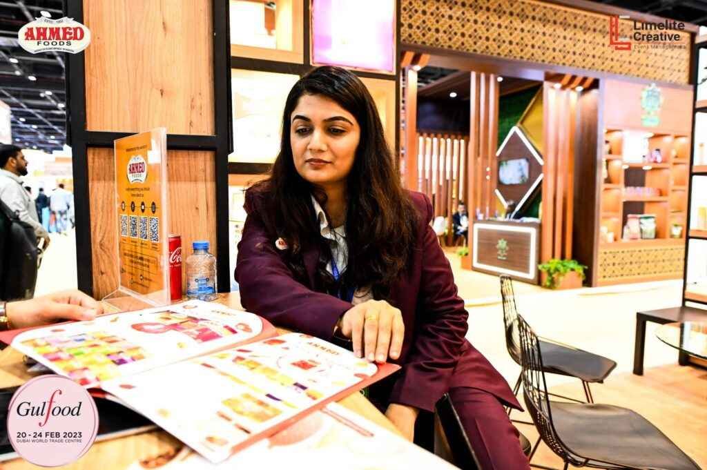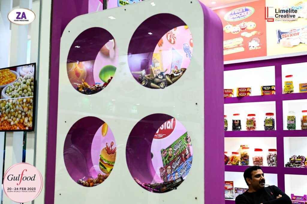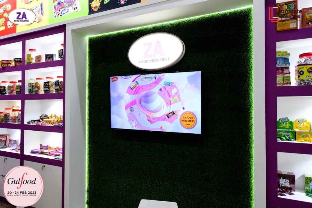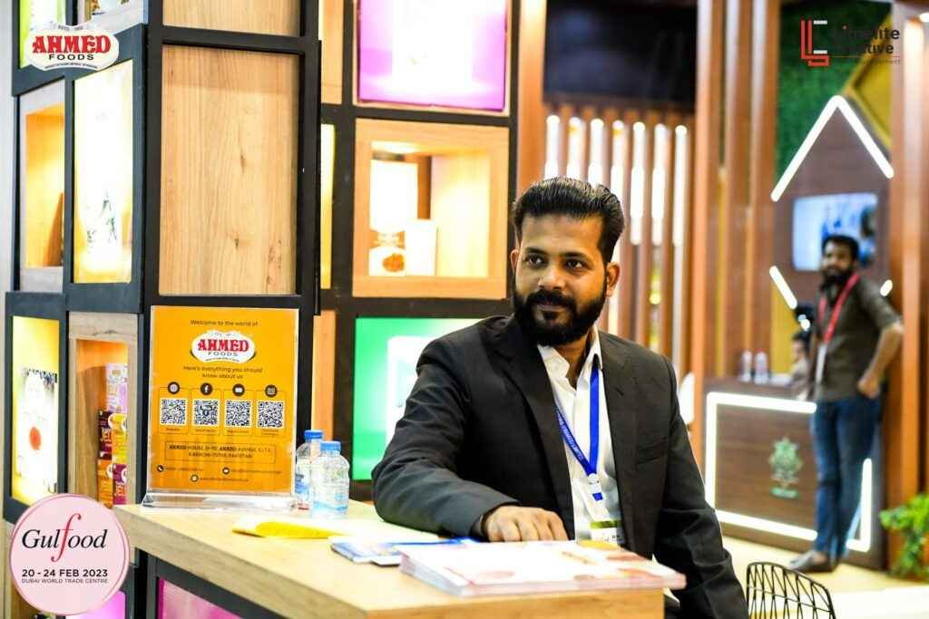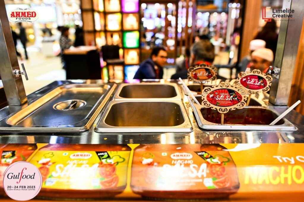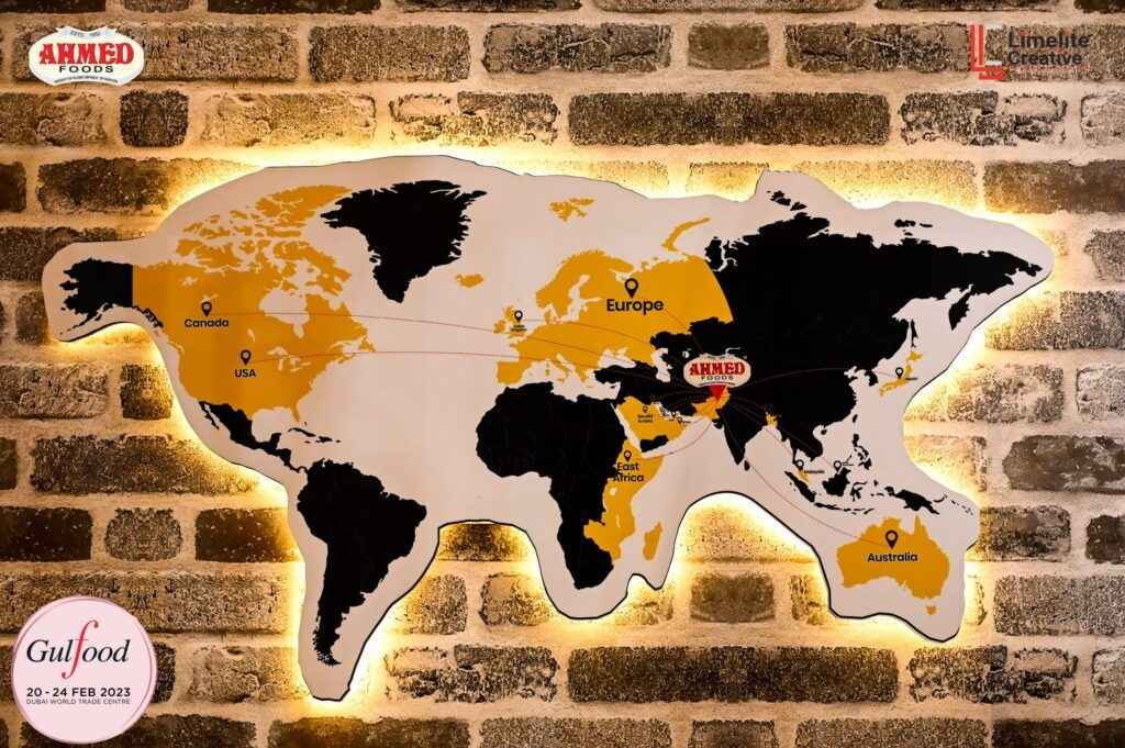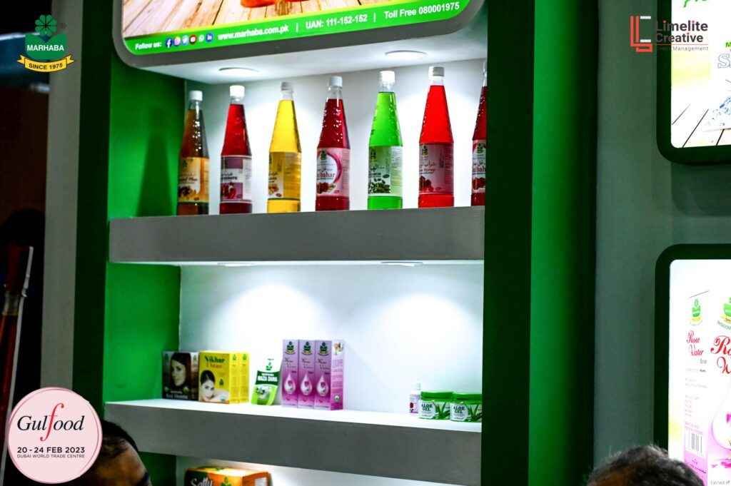 Ahmed Foods stall size was 6mX6m having total area of 36 squares meter. The design looked simple & beautiful with nicely lighted logos on counter & back wall along with backlit boards.