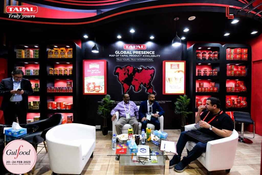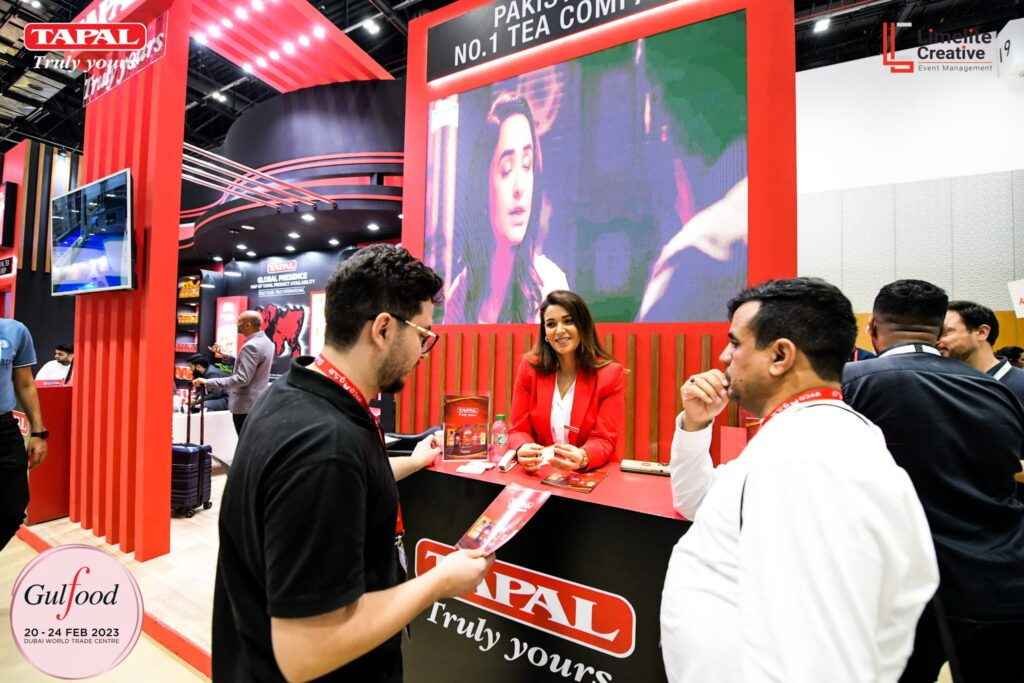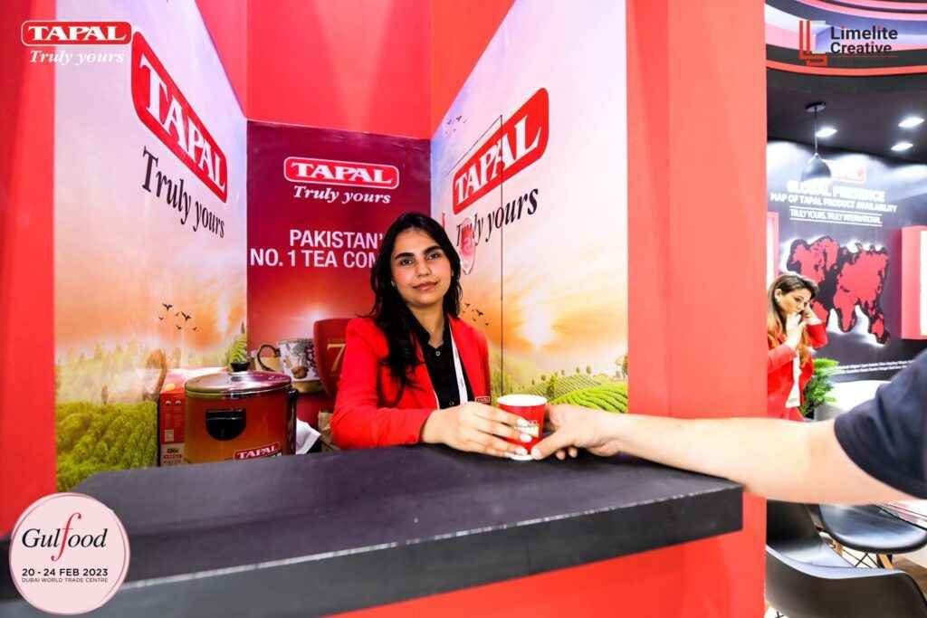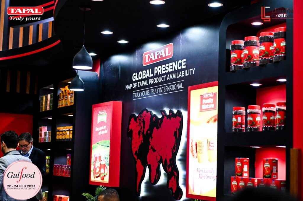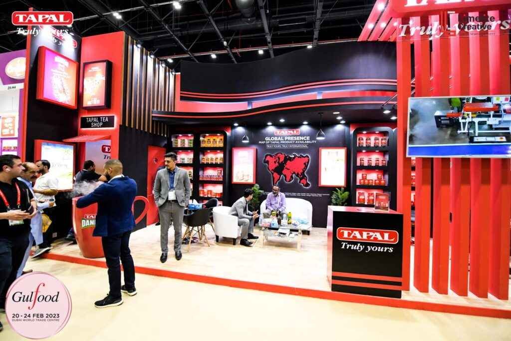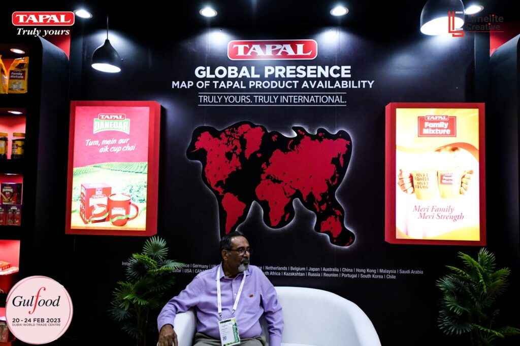 Tapal stall size was 11mX3m having total area of 33 squares meter. The design looked simple & beautiful with nicely lighted logos on counter & back wall along with backlit boards.