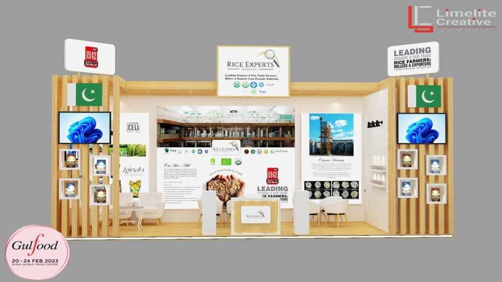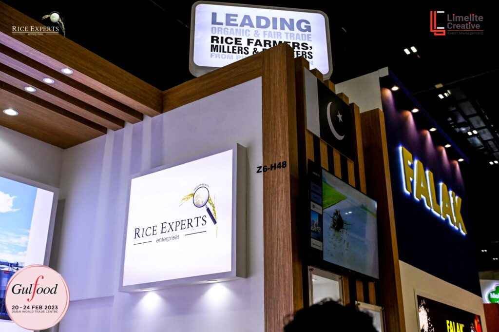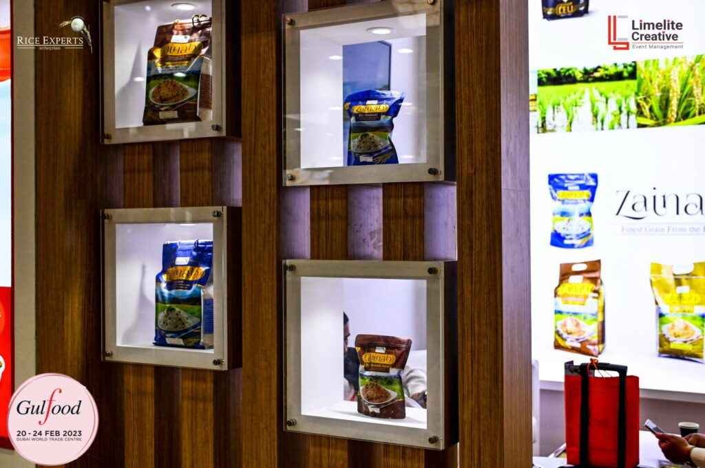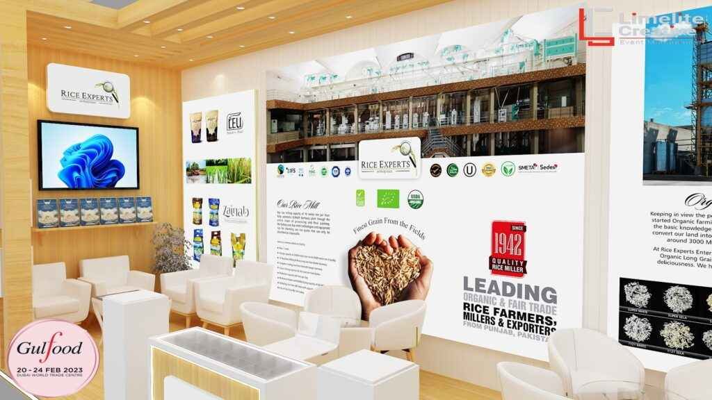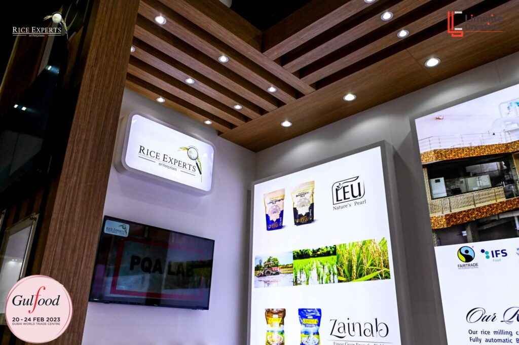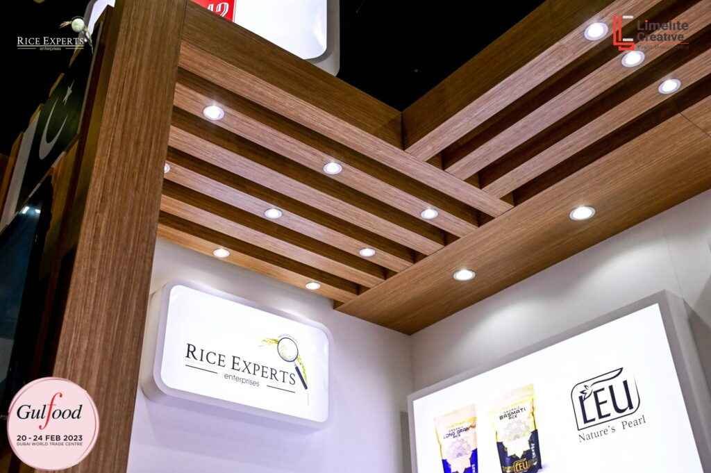 Rice Expert stall size was 10mX3m having total area of 30 squares meter. The design looked simple & beautiful with nicely lighted logos on counter & back wall along with backlit boards.
