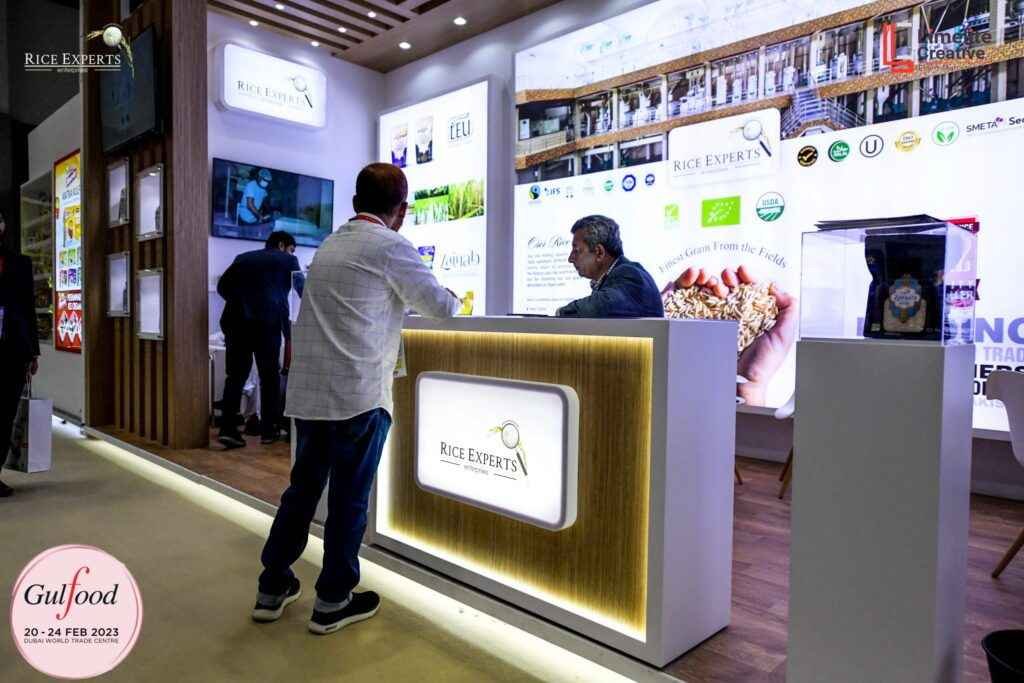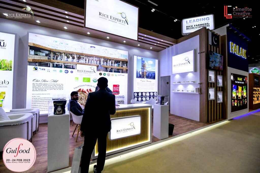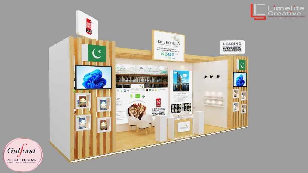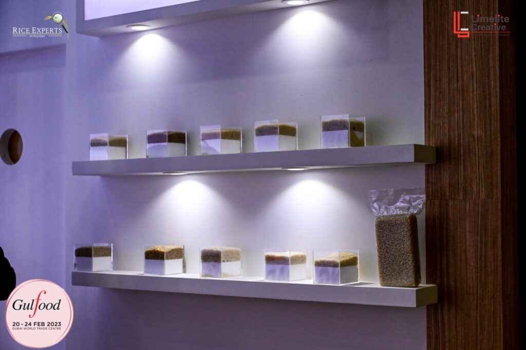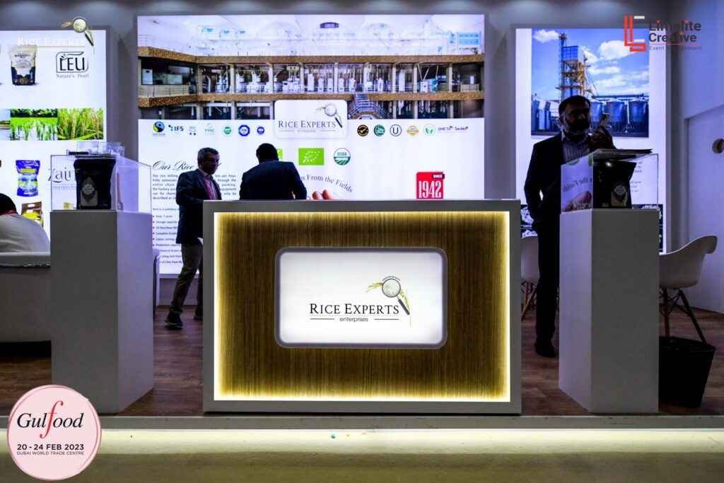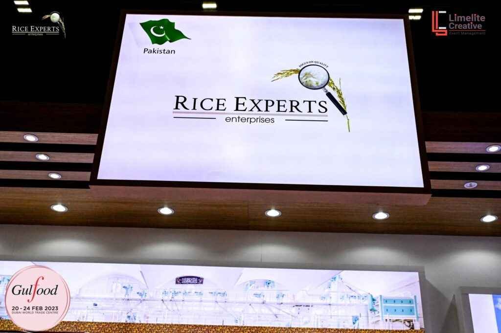 Rice Expert stall size was 10mX3m having total area of 30 squares meter. The design looked simple & beautiful with nicely lighted logos on counter & back wall along with backlit boards.