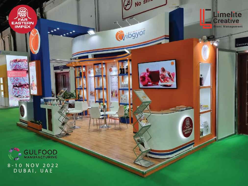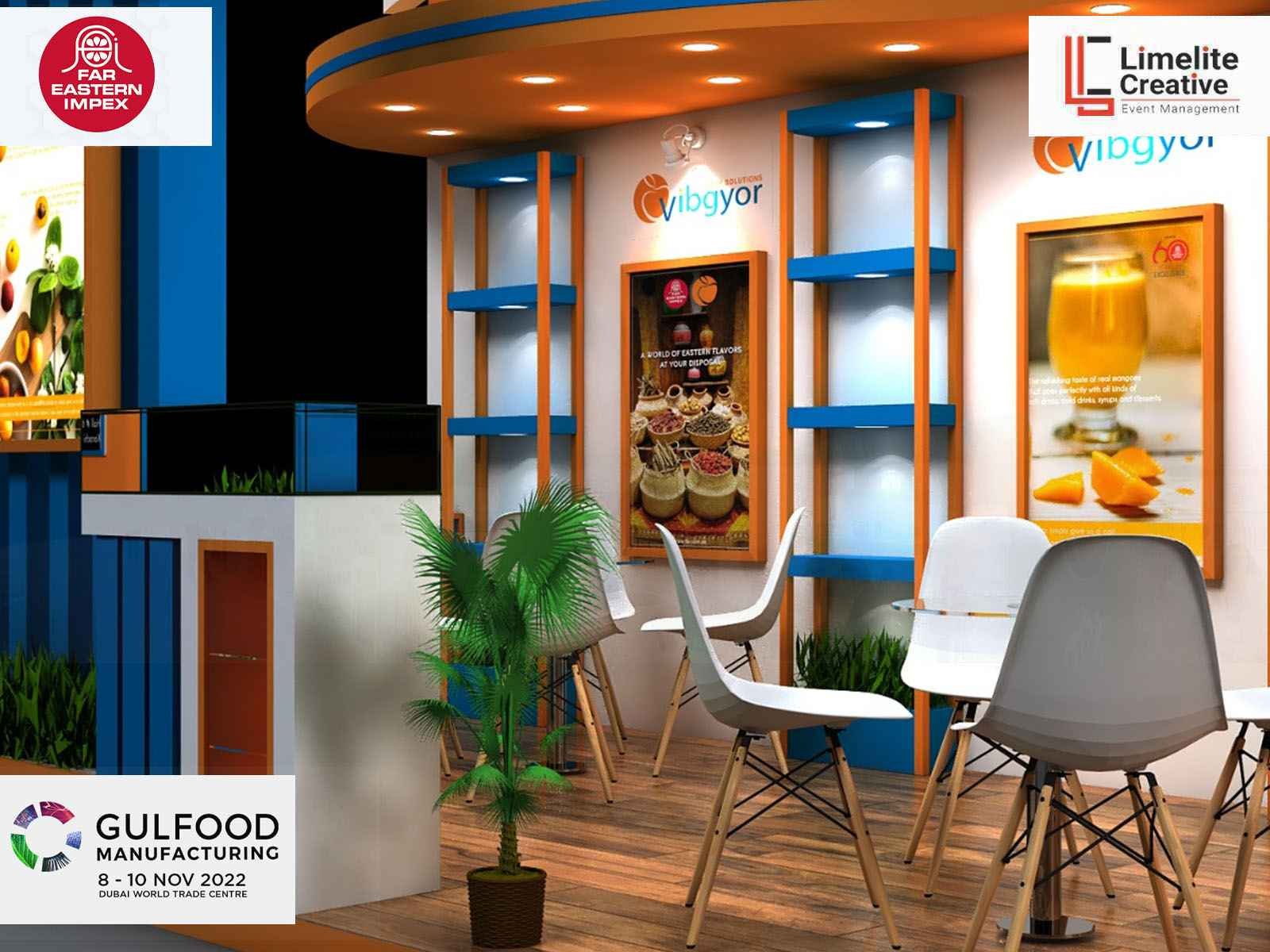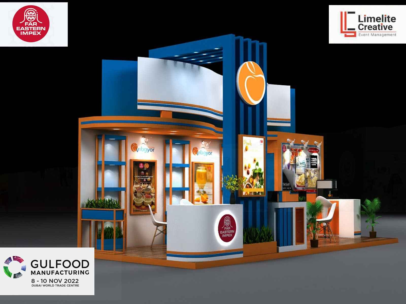 A functional and well-organized booth for Far Eastern at Gulfood Manufacturing 2022, featuring product displays, bold branding, and a layout that facilitated smooth visitor interaction.