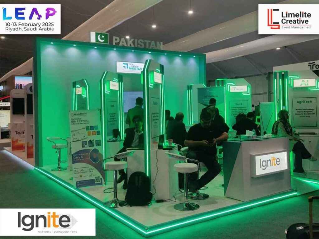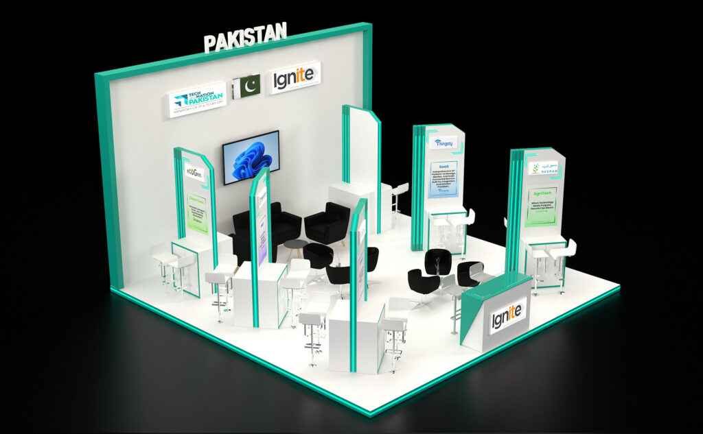 A bold and immersive booth for Ignite, built to showcase groundbreaking innovations in Pakistan’s tech ecosystem. The spacious design featured dynamic lighting, interactive tech zones, and high-impact visuals — creating an engaging environment that drew in startups, investors, and global tech leaders.