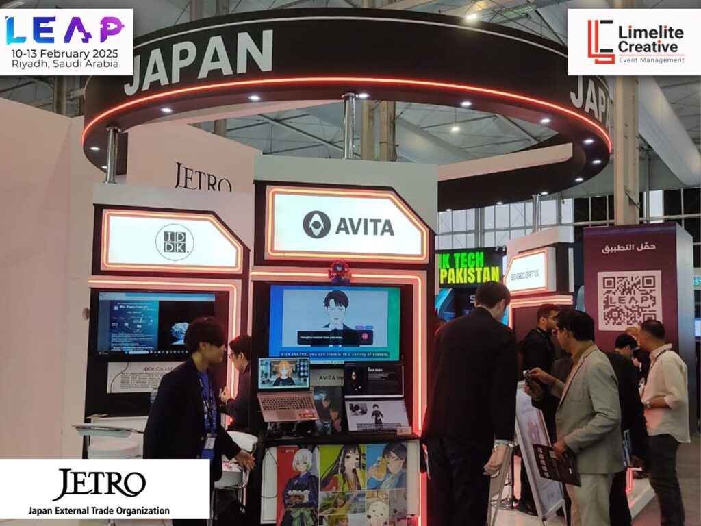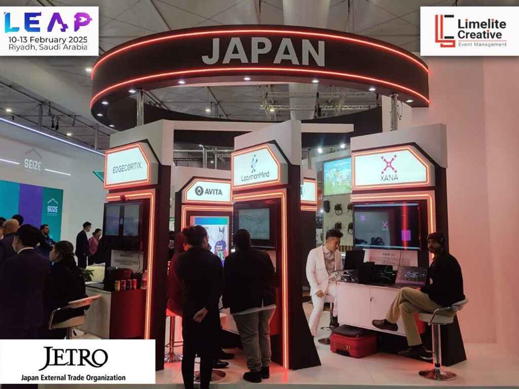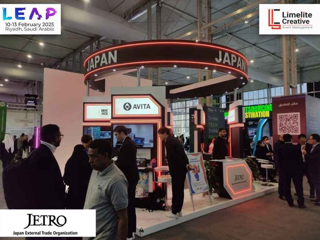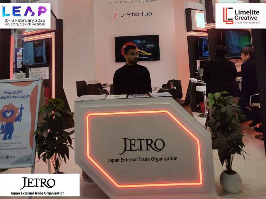 A sophisticated and culturally inspired booth for JETRO Japan, merging modern technology with refined Japanese aesthetics. The open layout featured product showcases, digital demos, and elegant design elements — offering a serene yet impactful space that attracted business delegates, innovators, and global collaborators.