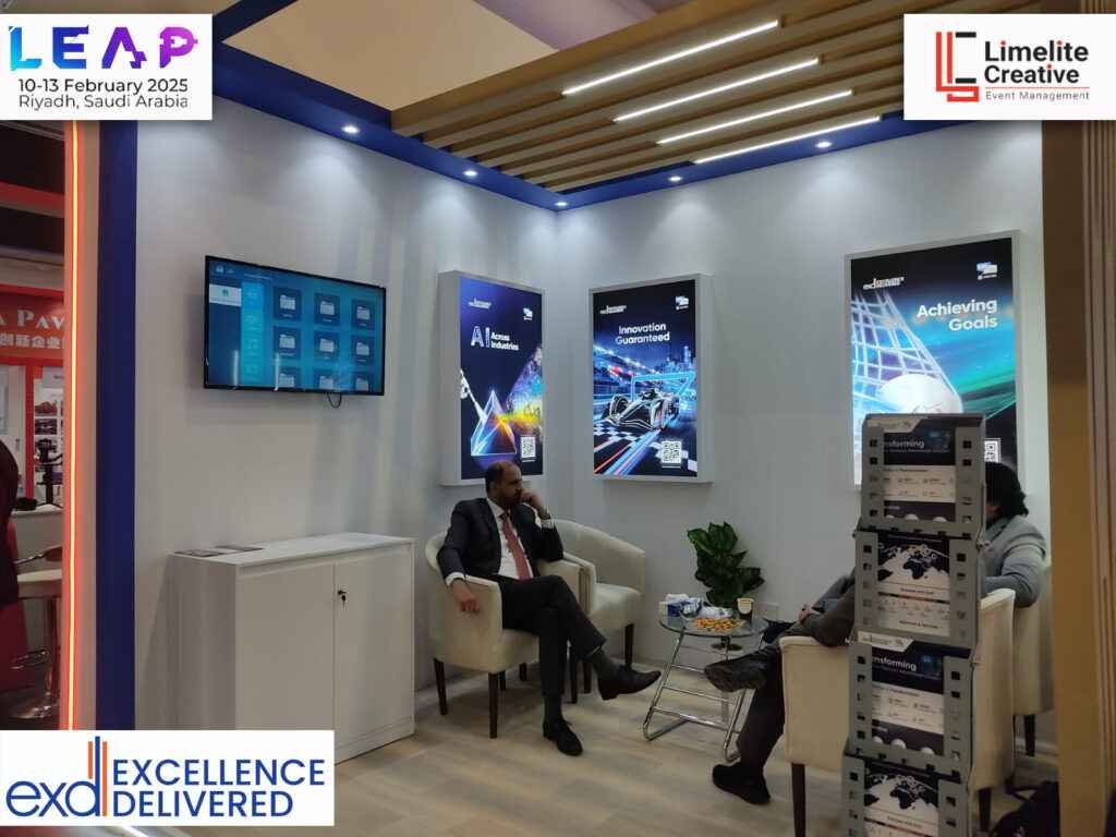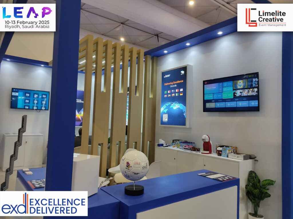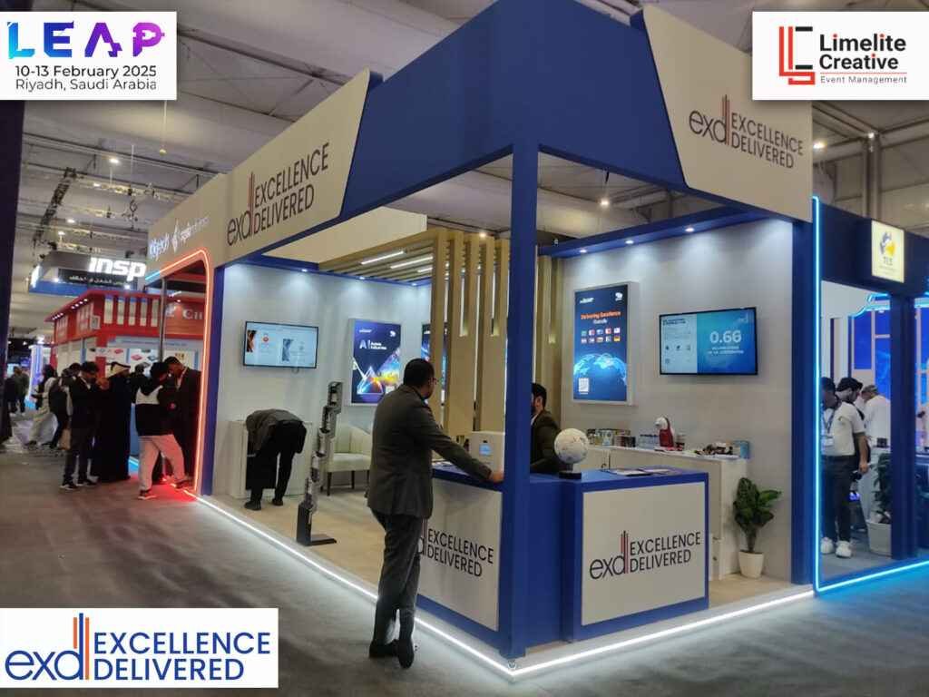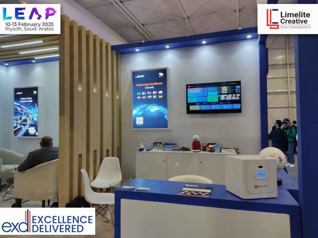 A professional and polished booth for Excellence Delivered, crafted to reflect the brand’s expertise in digital transformation and enterprise solutions. The design featured a sleek layout with interactive demos, clean branding, and strategic lighting — creating a space that attracted business leaders, decision-makers, and tech partners.